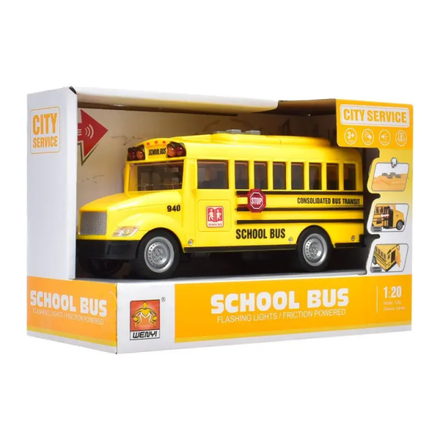 Іграшковий шкільний автобус WY 940 — це яскрава та реалістична модель, яка обов’язково сподобається дітям, що люблять транспорт і сюжетні ігри. Автобус виконаний у класичному жовтому кольорі, характерному для шкільних автобусів, має приємний дизайн, деталізований корпус і зручний розмір для дитячих рук.